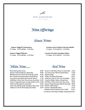 In order to ensure that meals are served in a timely fashion, we will be pre-ordering the meals for this meeting. Please refer to the Albatross dinner menu attached and include your meal selection (including sides, as well as appetizer and/or dessert) in your RSVP.